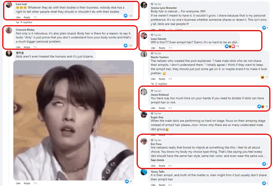 On one hand, some of them appeared to echo the netizen’s sentiment. To quote one commentator, “I think it looks messy. I know female idols do laser treatment on their armpit and legs but there are so few male idols who shave their arm and leg hair.” There was also a netizen who commented that it should be “mandatory” for idols to have their armpits shaved. “It looks dirty in my opinion if they don’t shave,” another commenter chimed in.