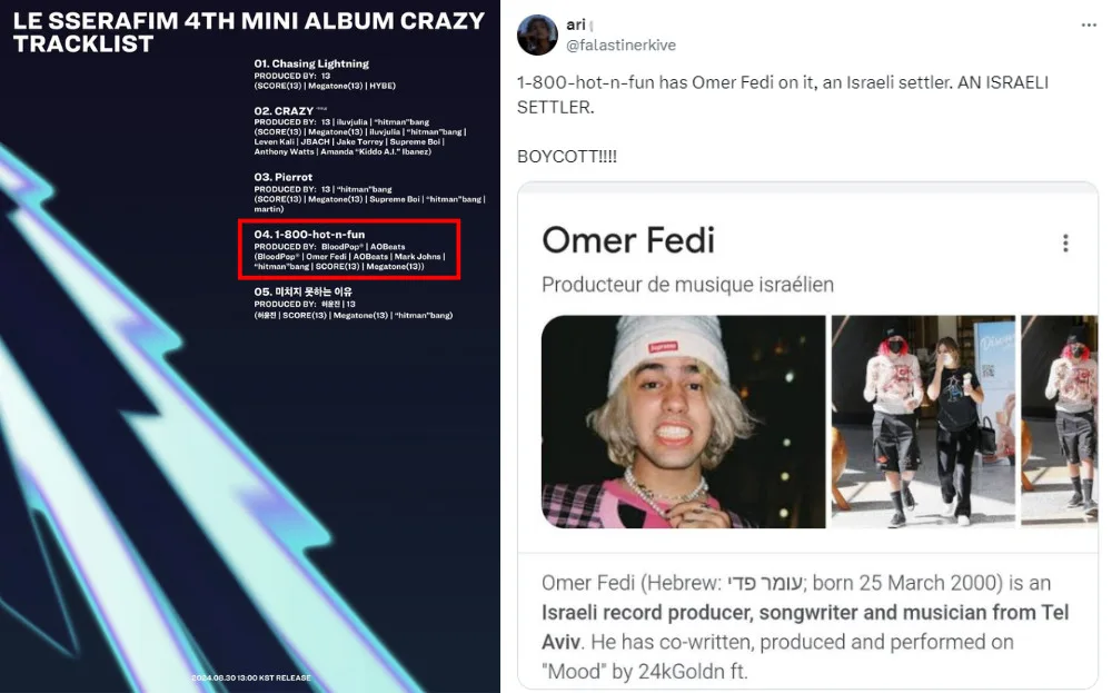 Omer is an Israeli producer who has worked with many artists, including The Kid Laroi and Ella Mai. The 24-year-old was born in Tel Aviv, which, according to history, was built as a settlement in the Arab city of Jaffa in 1909. However, since 16, Omer has relocated to Los Angeles, where he has lived ever since. There also aren’t details regarding his stance on the Israeli-Palestine war, but many K-pop fans regard his background as enough reason to boycott his work, including the LE SSERAFIM album.