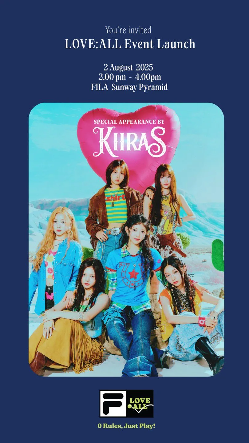With KIIRAS (키라스) set to perform in Malaysia on the 1st August (Friday), fans have been eagerly speculating about what else the group might have planned during their visit. Now, it has been excitingly revealed that to mark the launch of FILA’s latest collection, “LOVE: ALL,” the rising K-pop stars will also appear as special guests at the event. Their vibrant energy and dynamic style will seamlessly blend with FILA’s iconic aesthetic, making for an unforgettable celebration.