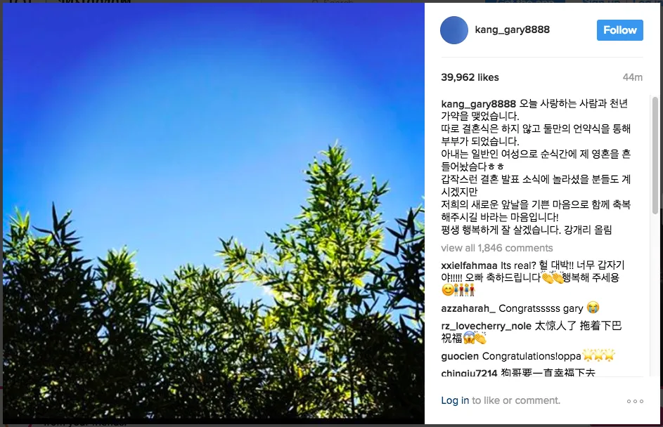 Aside from that, it seems like Gary had it all planned out from the very beginning as he just dropped another surprise on us! The 39-year-old rapper just updated his Instagram with a photo that, at first glance, you wouldn’t even think twice about. But the caption reads, “I got married to the person I love today. We didn’t have a wedding ceremony but the two of us became a married couple through our own expression. My wife is a non-celebrity who shook my soul in an instant. Though there may be those of you who are shocked by the marriage news, I hope you bless us with a joyful new future. I’ll live well and happily for the rest of my life.”