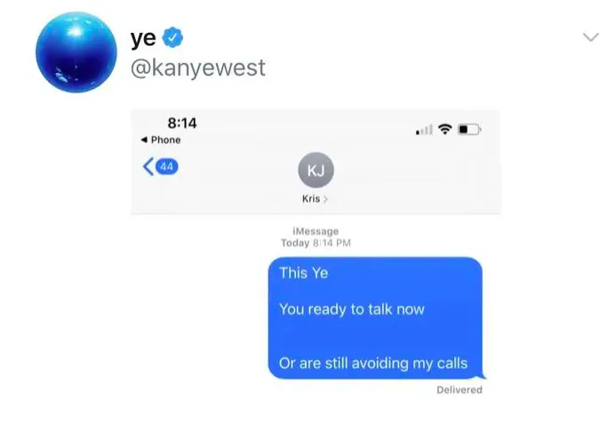 - In a deleted tweet, he posted a screenshot of a text message asking, “Kris and Kim, call me now.”