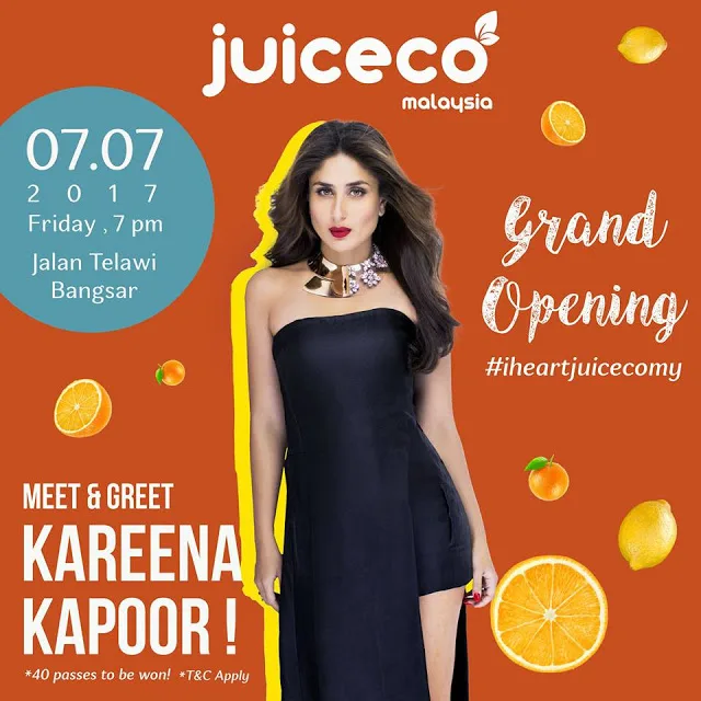 Juiceco will also be giving away 40 passes to fans to meet and greet Kareena Kapoor. Visit juiceco.com.my for more details.