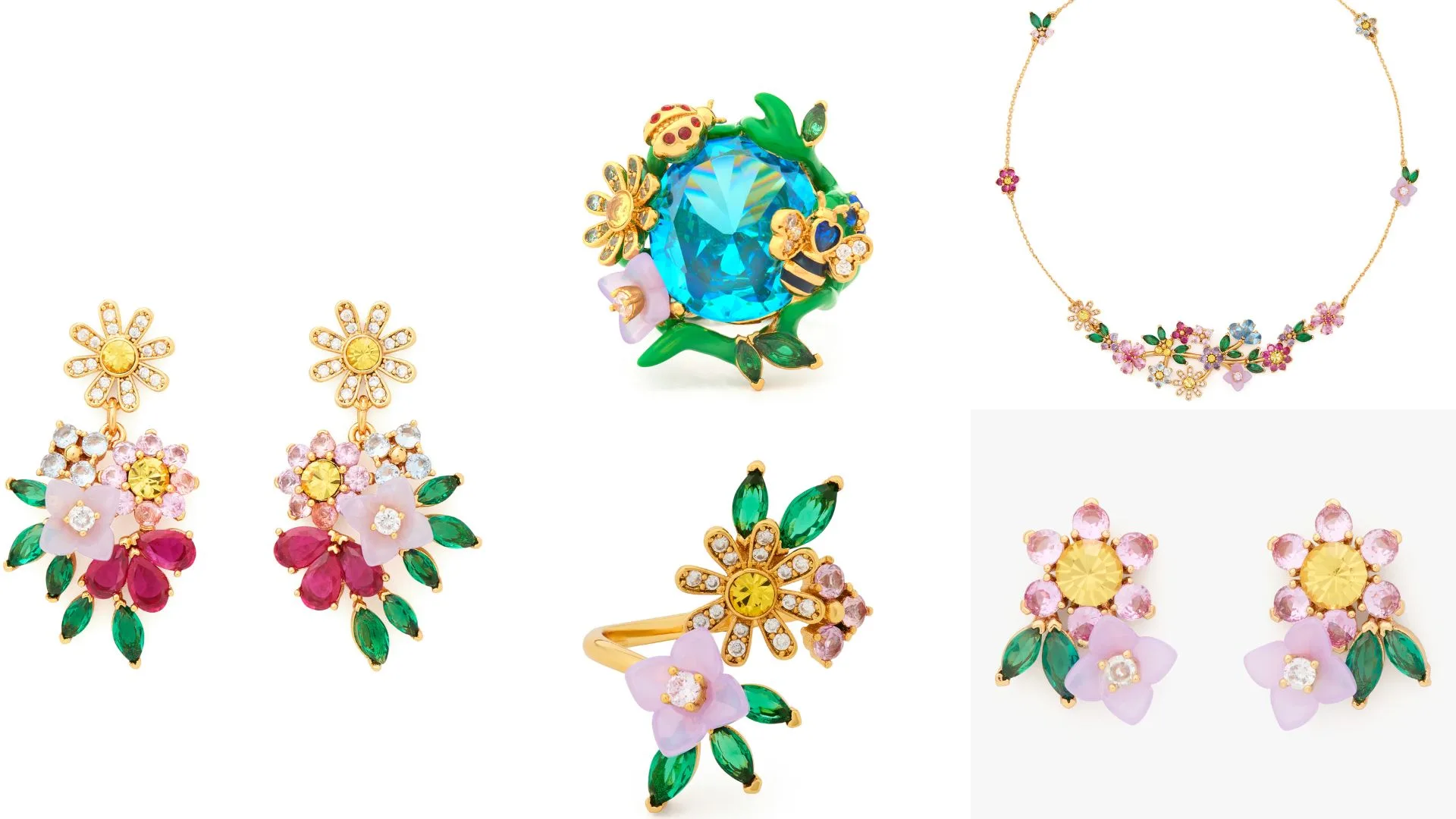 The Spring 2025 jewellery assortment features wearable pieces that can be easily styled and layered, adding a modern touch to every outfit. Molten emulates the fluidity of liquid metal. The sculpted jewellery group offers sleek and eye-catching linear earrings, statement necklaces and bracelets in gold and silver. The Heritage Bloom assortment reimagines kate spade new york’s signature spade as an exquisite floral motif to adorn Lucite-metal hoops, rings and bracelets.