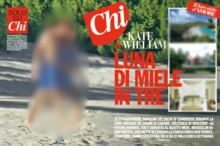 Italian gossip magazine Chi has published the photographs, splashing images of the Duchess of Cambridge in a bright blue bikini on the cover. The photos show the pregnant Kate Middleton strolling on a beach with Prince William on the island of Caribbean island of Mustique, where they’re on their “babymoon”.