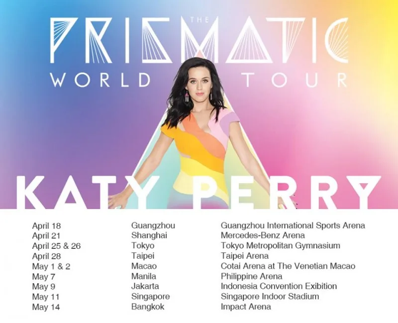 “I’m thrilled to bring the Prismatic World Tour to some of my favourite places in Asia, as well as some sensational places I’ve never been to. I can’t wait to take in the sights and culture, share my music and meet all of the new fans.”