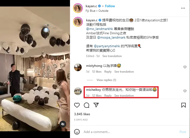 In fact, on 23rd November, Kayan shared that she had taken her boyfriend to a luxurious hotel to celebrate his birthday. Unfortunately, her celebrations were mildly marred when netizens claimed they had spotted her naked boyfriend in the bathroom mirror!