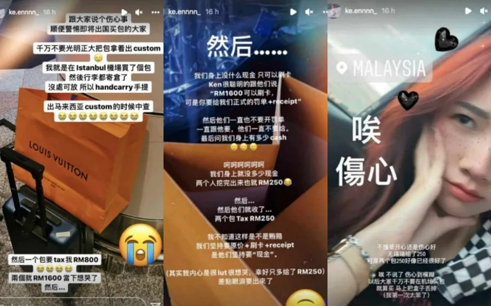 Kate shared that they were going to tax her RM800 for a bag. “Two bags (means) RM1600,” she said. “I want to cry now.” Kate’s boyfriend told customs they would pay for the tax by card, as neither of them were carrying cash. “But you have to give us a formal ticket and receipt,” he stressed. However, they apparently refused to issue a ticket, saying they have never done so before.