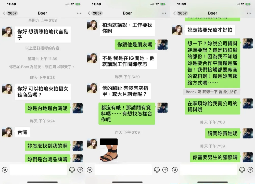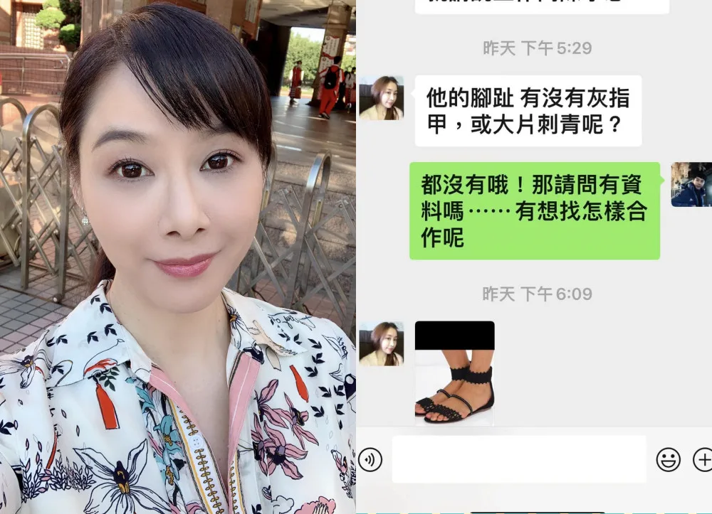 Actress Kelly Chen (陈柏渝) reported a pretty interesting one. This time, it involved a fake shoe company, photos of feet and a very specific request for toes.
