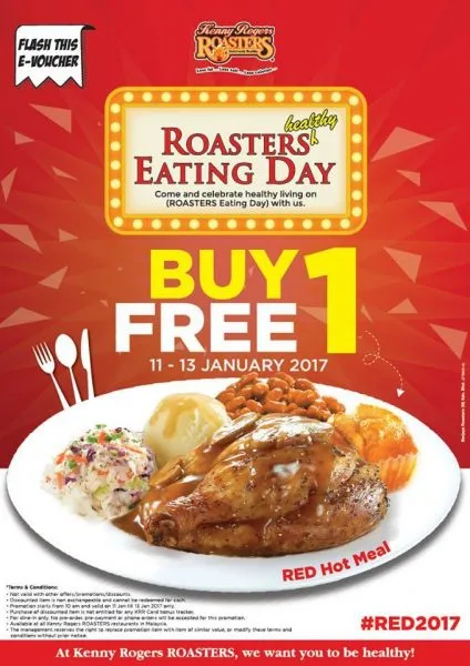 In celebration of Roasters Eating Day, Kenny Rogers Roasters Malaysia will be rewarding customers with a Buy 1 Free 1 promotion for every red hot meal to promote healthy living.