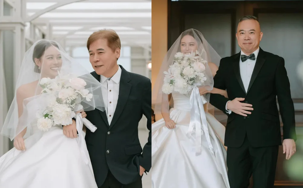 Hung Mei Fu (transliteration of 洪美福), the daughter of award-winning Taiwanese singer Chris Hung, also married her partner on the 20th. However, what sets her wedding apart is how her two dads took turns to walk her down the aisle. According to reports, Hong Meifu first walked into the venue holding Chris’ hand. Once they got to the door, her stepfather took over to walk her to the altar. Meifu’s mother, Chen Shih-yu (陈施羽), spoke of the lovely moment, saying, “On this special day, two fathers who love her handed her over to the groom.”