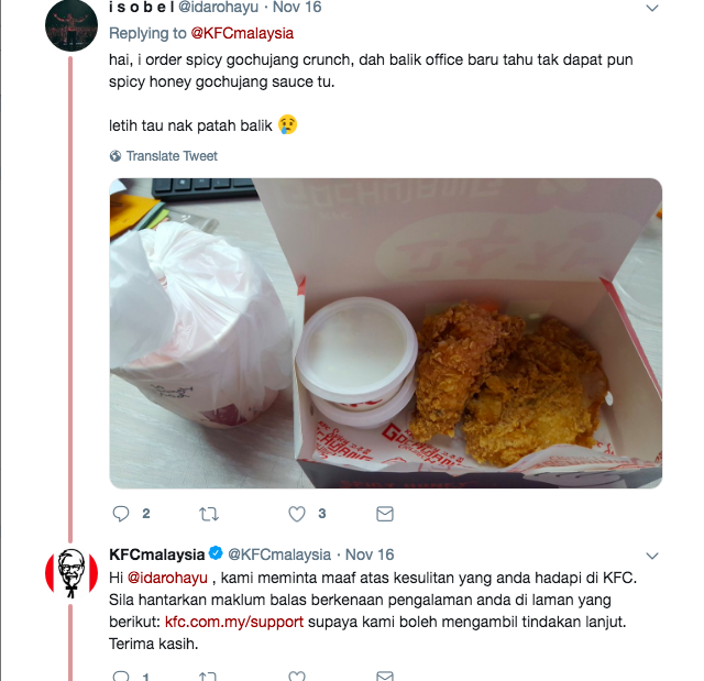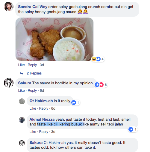A couple of netizens shared that they weren’t given Spicy Honey Gochujang sauce when ordering. A few who tasted the sauce commented that it “taste like cili kering busuk”. There are also those who felt that the cause didn’t necessarily pair well with fried chicken. Perhaps KFC ought to have included authentic Korean fried chicken instead.