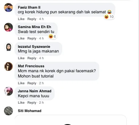 The news was met with amusing reactions left by cybernauts here in Malaysia. Facebook user Faeiz Ilham II sarcastically remarked, “It’s not even safe for one to pick their nose in public nowadays,” accompanied with a LOL emoji. Check out what they said here: