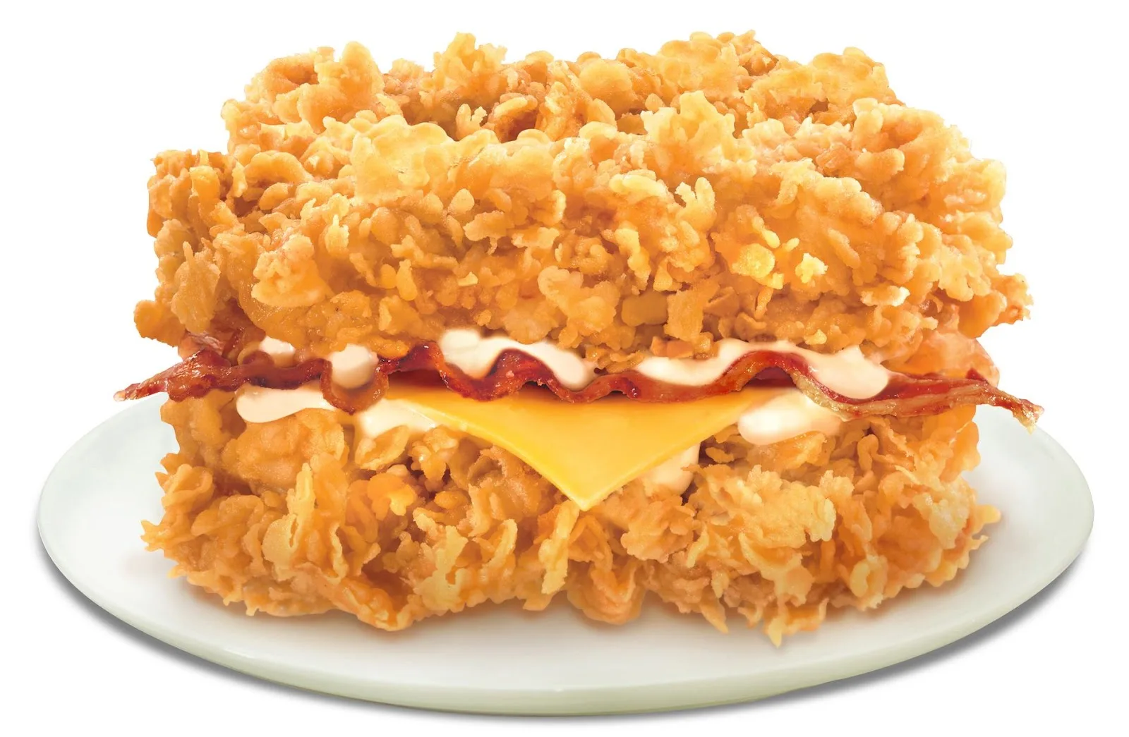 Introduced in Malaysia in 2012, the bun-less burger is made up of 2 juicy yet crunchy Zinger fillets, a slice of cheese, and ham. In the new promo clip, it seems like KFC will be using its signature cheese sauce for the epic burger. The set also comes with french fries and a drink.