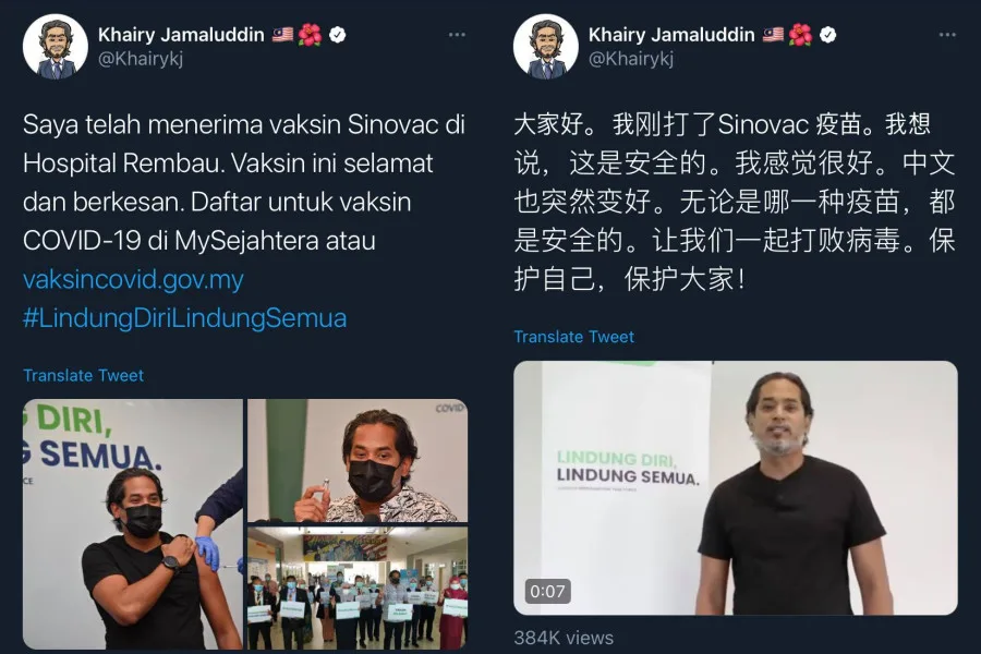 One thing that caught the public’s attention, though, would be Khairy’s reaction half an hour after taking the jab. The Minister of Science, Technology and Information jokingly remarked that he has also improved his fluency in Mandarin!