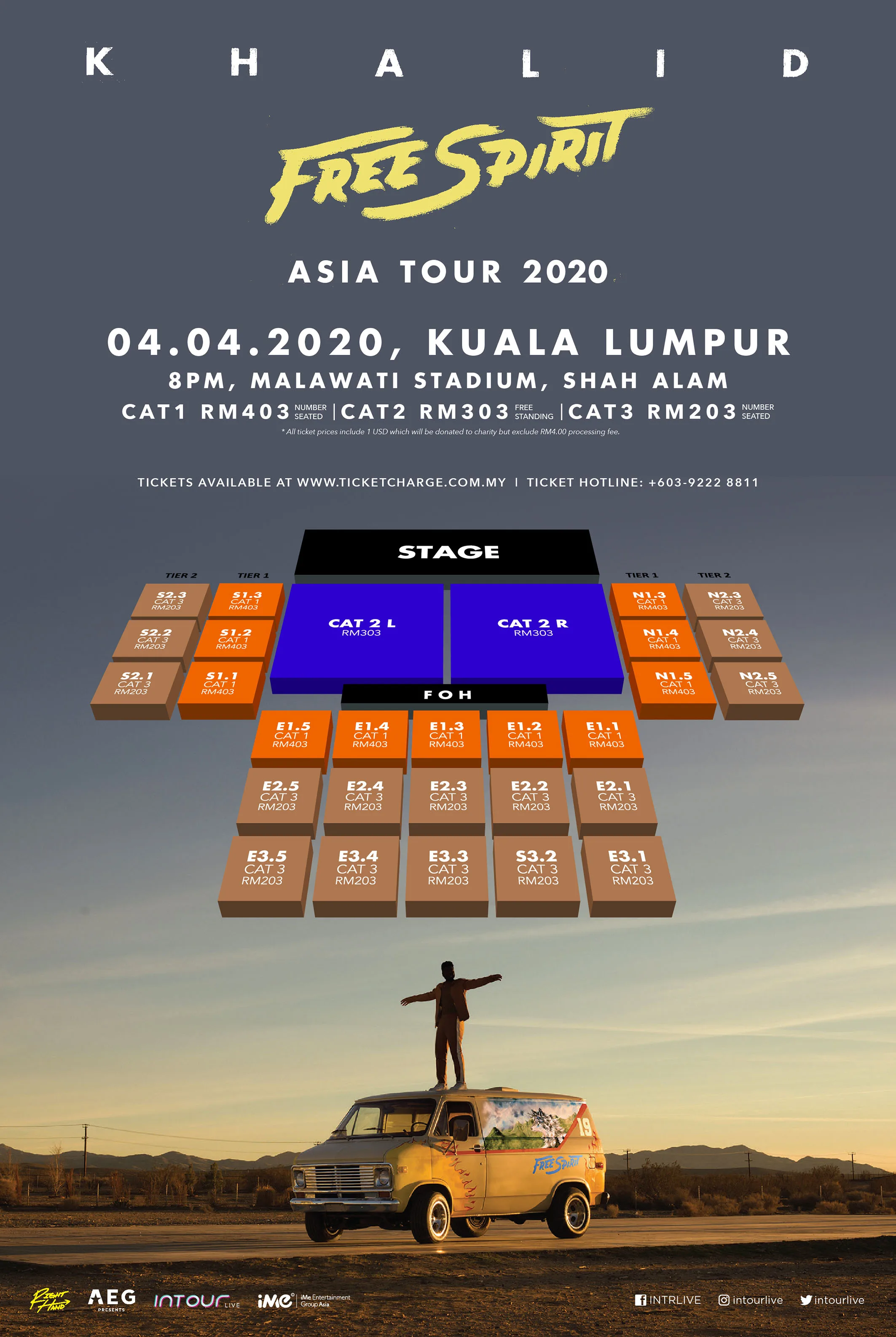 The details to Khalid’s Free Spirit World Tour 2020 in Kuala Lumpur are as follows: