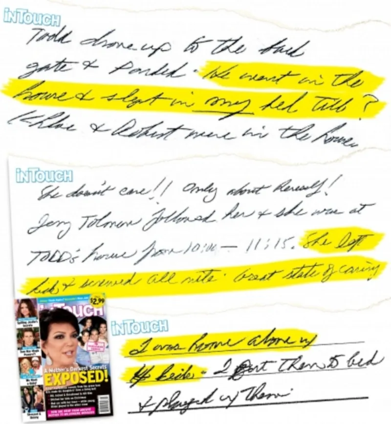15th December 1989: “Todd drove up to the back gate and parked. He went in the house and slept in my bed. Khloé & Robert were in the house. She (Kris) doesn’t leave a number in case of emergency. She doesn’t care! She left the kids and screwed all night!”
