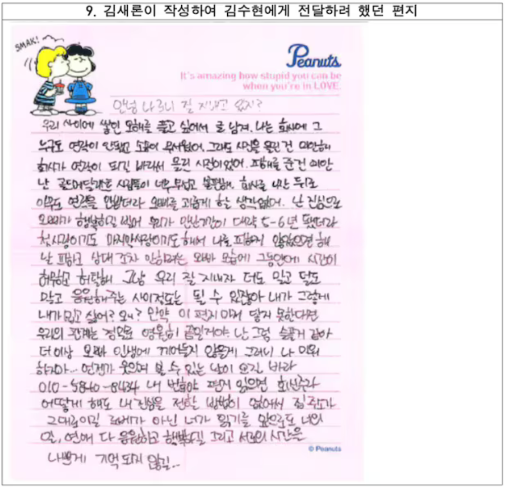 The third evidence was a series of messages written by Kim Saeron in September 2017, when she was 17 years old, to Kim Soohyun, before his military enlistment in October 2017. There was another set of messages exchanged in 2018, likely when the actor was on leave from his service.