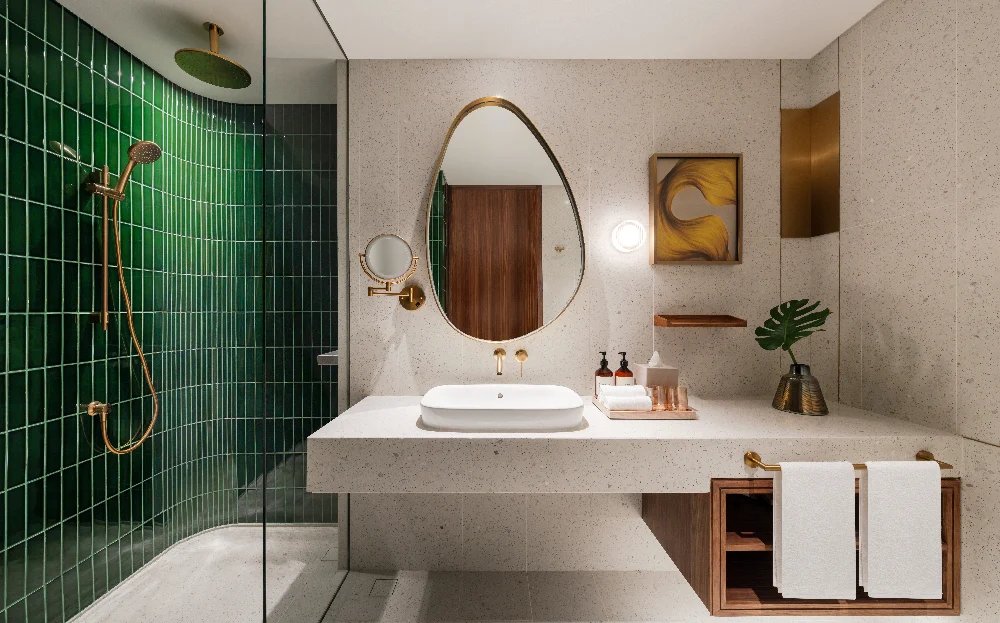 The interior design is headed by award-winning design studio, Hassell, who pulls inspiration from Malaysia’s rich natural landscapes. Weaving natural elements with contemporary designs, the hotel welcomes guests into a spacious, high-ceiling lobby, and lush greenery. Earthy hues, forest-green tones, and organic textures integrate seamlessly into the rest of the hotel’s interior.