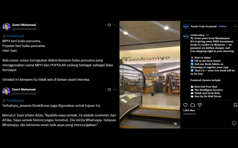 Kinokuniya Malaysia has issued a public warning after discovering several fraudulent social media accounts impersonating the bookstore. These fake accounts have been claiming to offer free books, tricking unsuspecting users into engaging with them.