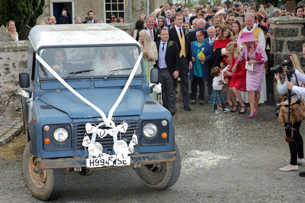 Speaking outside the castle, Leslie’s dad, Sebastian, said: “We are absolutely thrilled for Kit and Rose to be marrying today. It’s an absolutely lovely day for us. It’s a great day for Aberdeenshire. We are using local caterers, local lighting, local flowers.”
