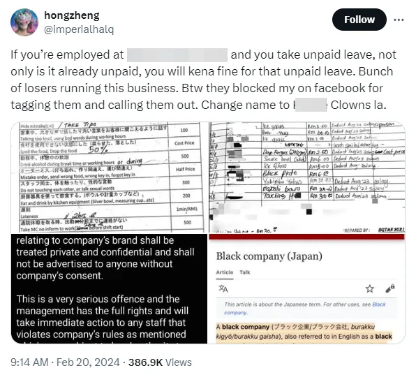 News of the store’s alleged underhanded policies first starting circulating on Twitter, where the netizen claimed that the ramen chain store would fine their staff for unpaid leave. They also included the list of offenses the restaurant would charge their staff for.