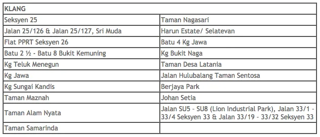 Syarikat Bekalan Air Selangor (Syabas) has announced that there will be a disruption in water supply in parts of Klang as the company works on the replacement of the water distribution system hardware near the Mapletree Factory on 10th August 2017. During the replacement works, several areas in Klang will experience temporary water disruption beginning 8am on 10th August 2017 until 11th August 2017.