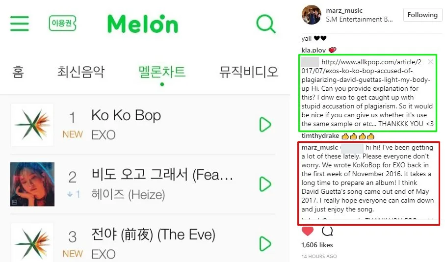 “Please everyone, don’t worry. We wrote ‘Ko Ko Bop’ in the first week of November 2016. It takes a long time to prepare an album! I think David Guetta’s song came out end of May 2017. I really hope everyone can calm down and just enjoy the song,” replied the music maker on Instagram.