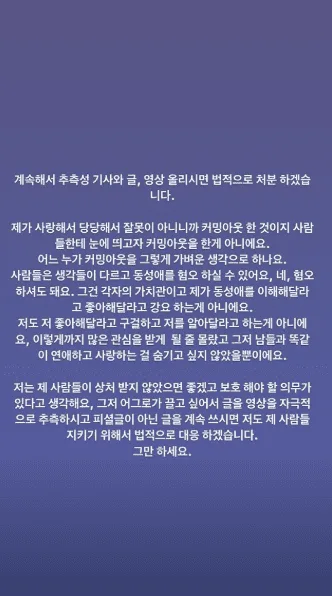 As a response to the claims, Hyein warns the fans who left malicious comments that she will be taking legal actions if they continue to do so. In a lengthy Instagram story post, she also shared with her followers on why she decided to embrace her sexuality.