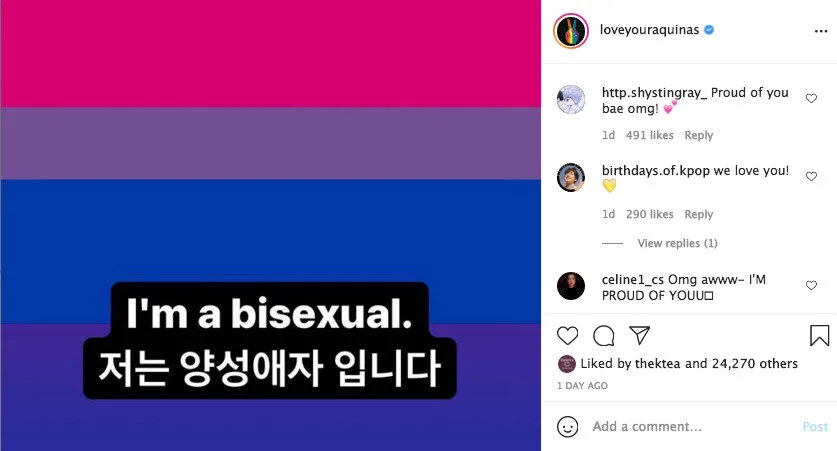 Aquinas, who found fame as a contestant of the Mnet reality show “High School Rapper”, shared a post on Instagram earlier on Tuesday (13th July), revealing to the public that he’s into both genders.