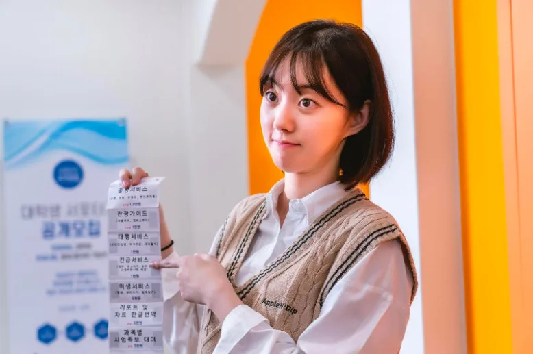 Minnie is also a K-pop idol as a member of the girl group (G)I-DLE. Her character of the same name is a sophomore and a K-contents major. She’s a true fashionista and she enjoys clubbing like many university students. Minnie described her character as being a huge fan of K-dramas and “in love with ‘Crash Landing on You’ and Hyun Bin.” Minnie’s character also has a K-pop trainee experience when she tags along with her friend to an audition and gets scouted herself.