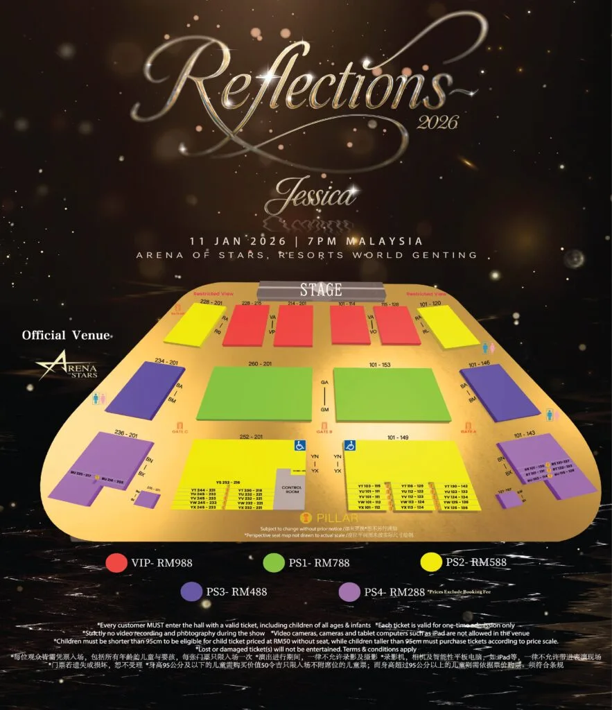 The singer, better known by the mononym Jessica, is embarking on her new tour, “Reflections”, in 2026. As part of the tour, the star will perform at Arena of Stars, Resorts World Genting on 11th January 2026 (Sunday). MMIC Entertainment Group and HT Entertainment Company serve as concert organisers. Tickets will go on sale on 20th November 2025 (Thursday) via Fantopia and rwgenting.com.