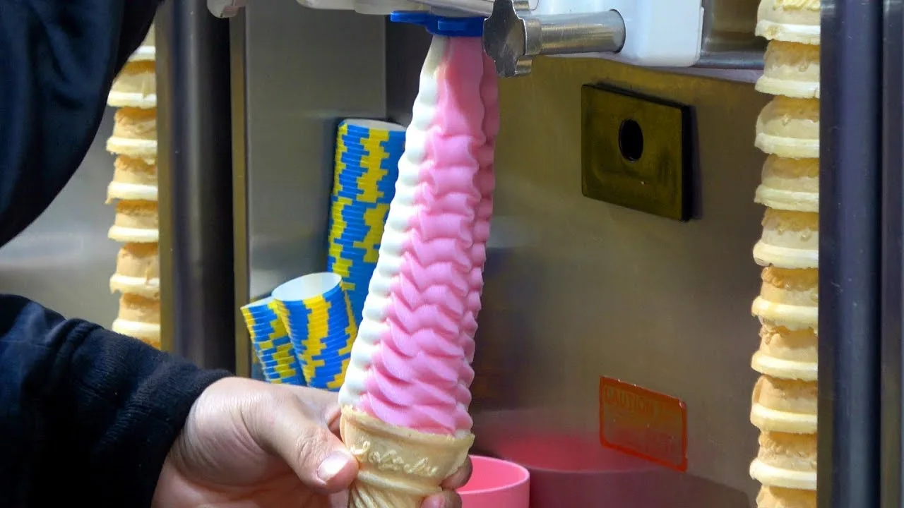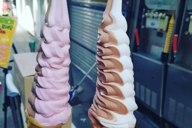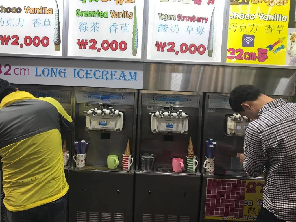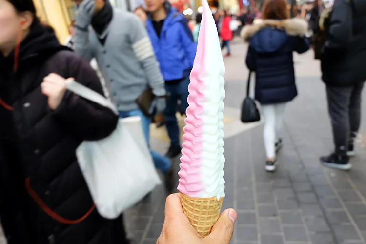The ice cream originates from within one of Korea’s well-known shopping sites which is Myeongdong, in its capital Seoul. There are also various other food vendors located in the district as well, and the 32-cm tall ice cream cones are one of the few famous ones in the area.