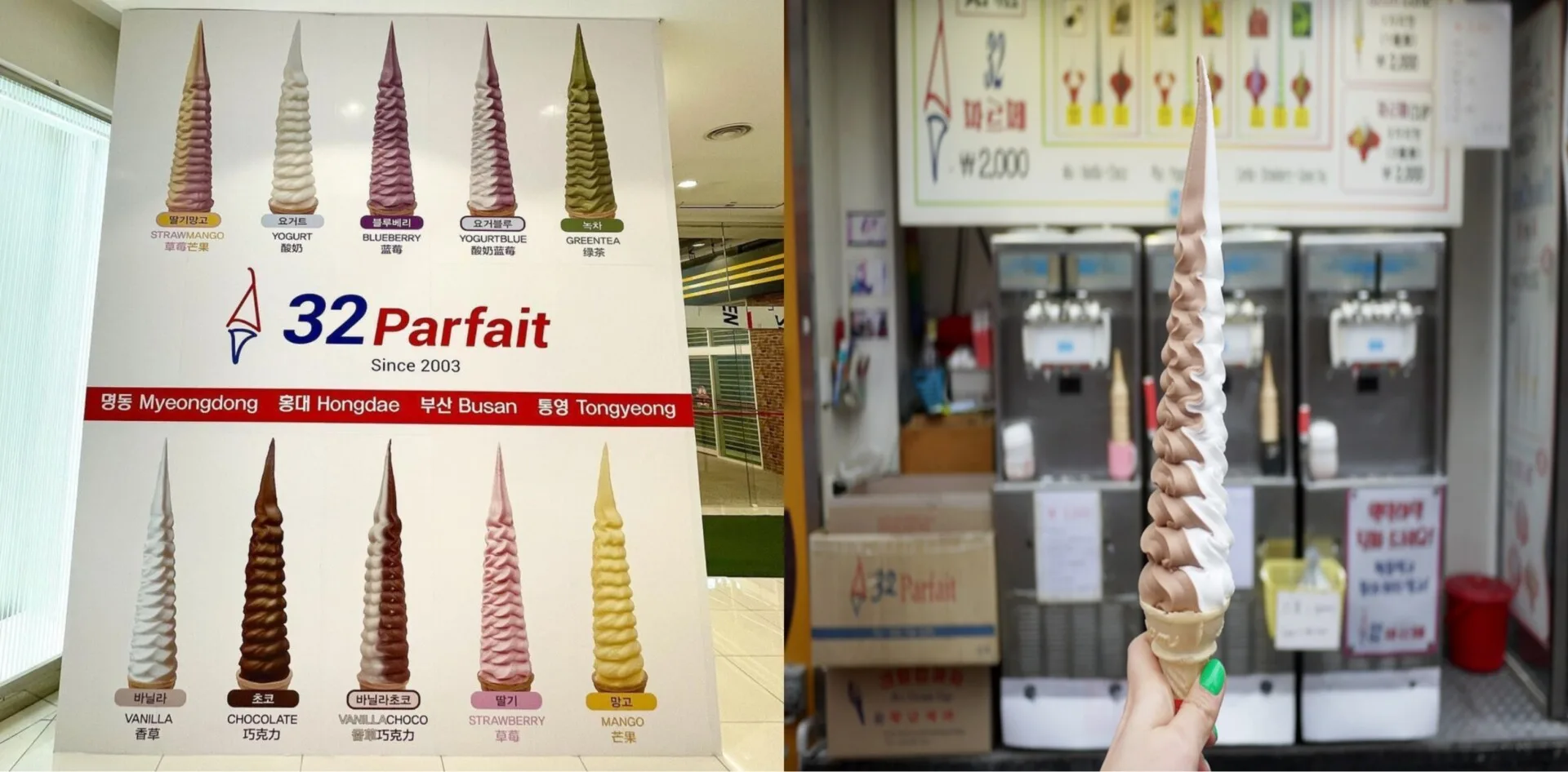 As you can see from the image, various flavours will be offered such as yogurt blue, green tea, vanilla, chocolate, vanilla choco, strawberry, and mango. Hopefully, it comes with a cup as well for those not comfortable getting their hands dirty, and that the price remains the same as seen in Myeondong as well.
