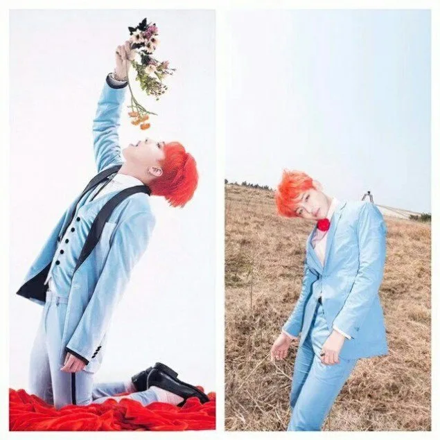 Another features G-Dragon and V donning similar outfits and hairstyles: