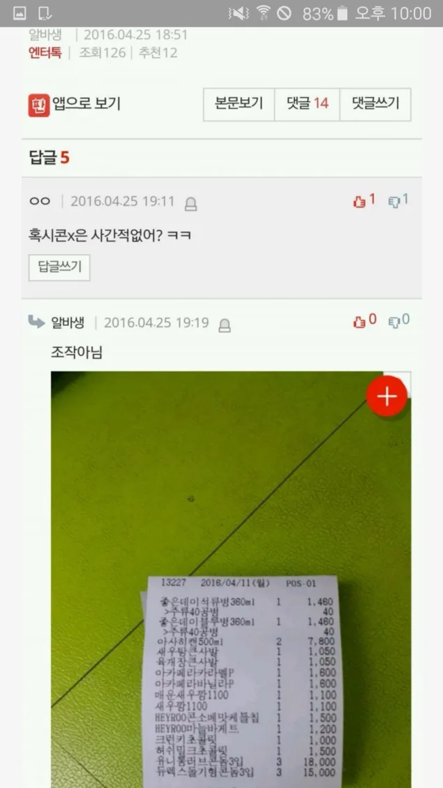 In reply to that question, the employee uploaded a screenshot of another receipt which shows the items Kai bought on 11th April. The list shows purchases of various snacks, cup noodles, sweets, and 6 packets of condoms (the last 2 items in the receipt).
