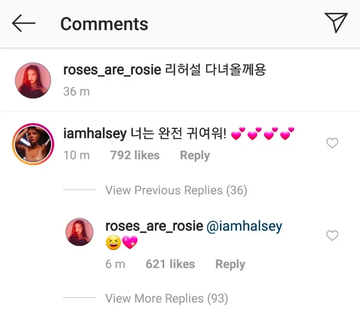 Just a few days ago, Rosé posted 2 candid photos of herself heading off to rehearsal and practising for an upcoming show. With more than 8000 comments, it’s pretty easy for comments to go unnoticed. However, several eagle-eyed Instagram users were quick to spot Halsey’s comment.