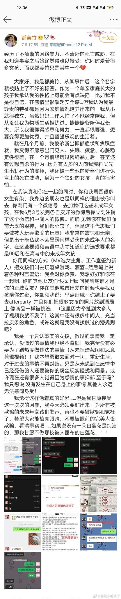 “Of course, seeing the innocent look in your eyes, our hearts would go soft. But that doesn’t mean we agreed to be your playthings!” Du added. “I’m extremely shocked and frustrated, but due to privacy reasons, I won’t be revealing the names of the underaged girls who were hurt. Through these clips and texts, I only came to learn that your selection criteria was underaged girls born after 2000 and were in the middle of taking college entrance exams.”