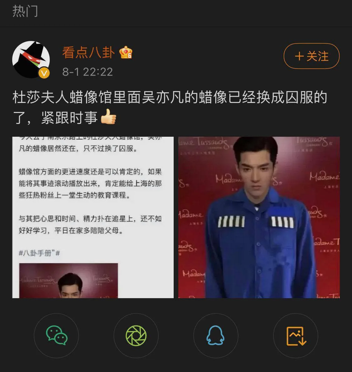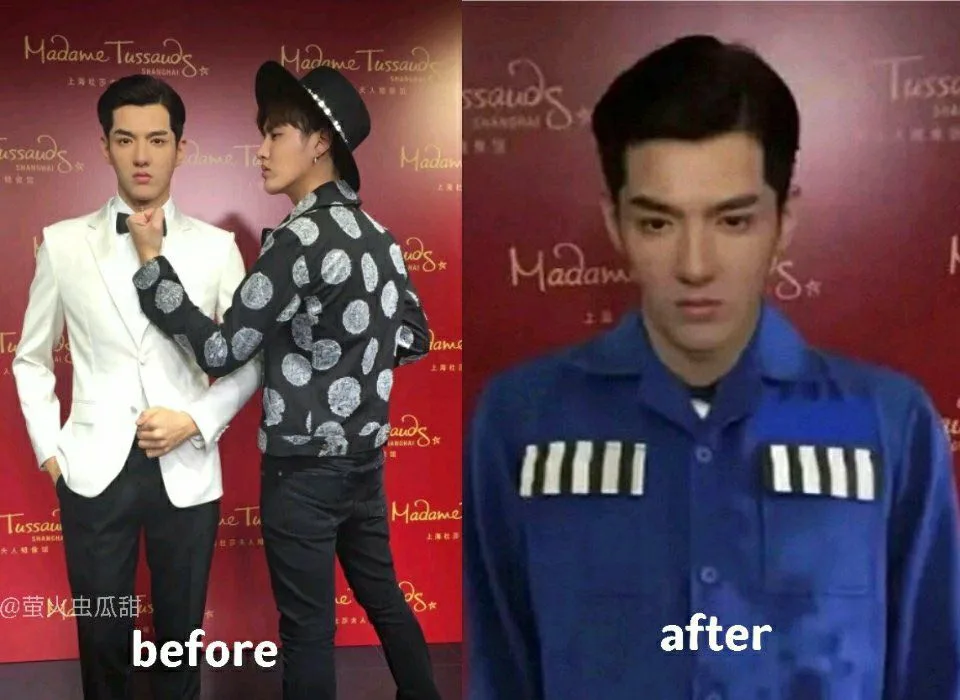 According to a report by Sohu News China (as per China Press), not long after the former EXO member was arrested, there were rumours claiming that the outfit of Wu’s wax figure had switched from the original white suit to a blue-coloured uniform for detainees (as seen in the photo above). The revelation has in turn incited heated debates among many netizens.