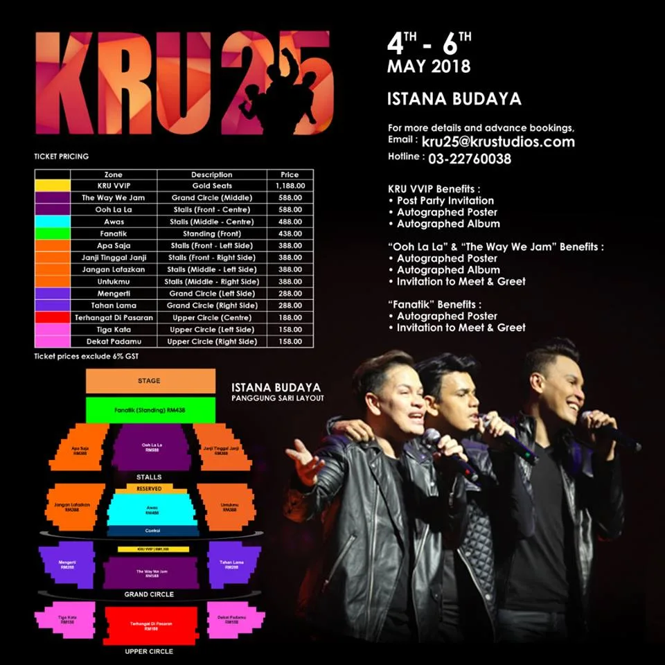 Malaysian pop boy band KRU has released the ticketing details and seating plan for their 25th anniversary concert aka KRU25!