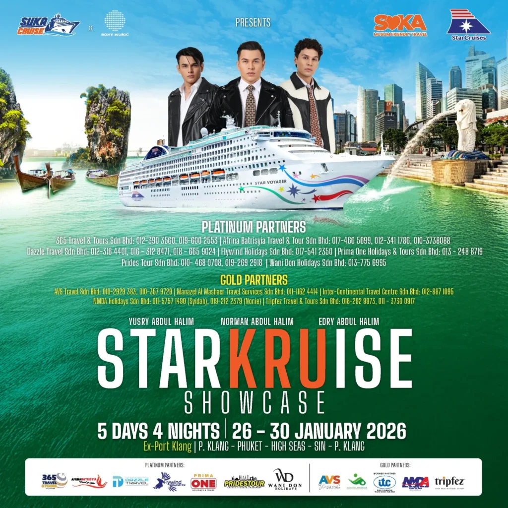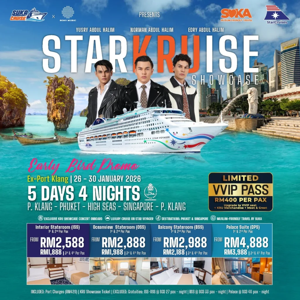 On 23rd October 2025 (Thursday), the group held a press conference to launch the Star KRUise Showcase, a unique travel and concert experience presented by SUKA Cruise, StarDream Cruise and Sony Music Malaysia that combines a cruise holiday and a KRU concert. The 5-day 4-night showcase will take place aboard the luxurious Star Voyage Cruise (SVO) in late January 2026.