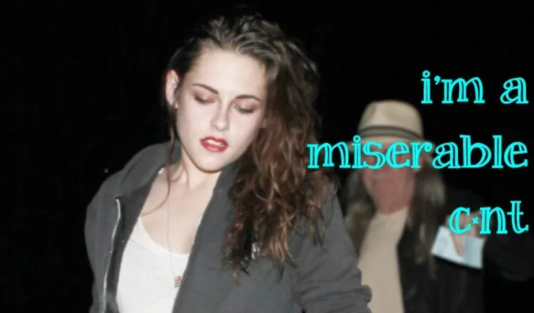 Considering the summer she’s had since photos were published of her and her married-with-kids “Snow White and the Huntsman” director kissing, we can cut her some slack for calling herself miserable – but the “c-” word? For crying out loud Kristen, come on! Don’t be so hard on yourself.