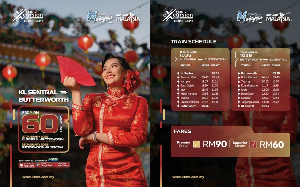 For this upcoming festive season, spend your holidays with Keretapi Tanah Melayu Berhad (KTMB) and its Chinese New Excursion train service! Running for two days, this exclusive train service will surely bring delightful memories for you and your family!