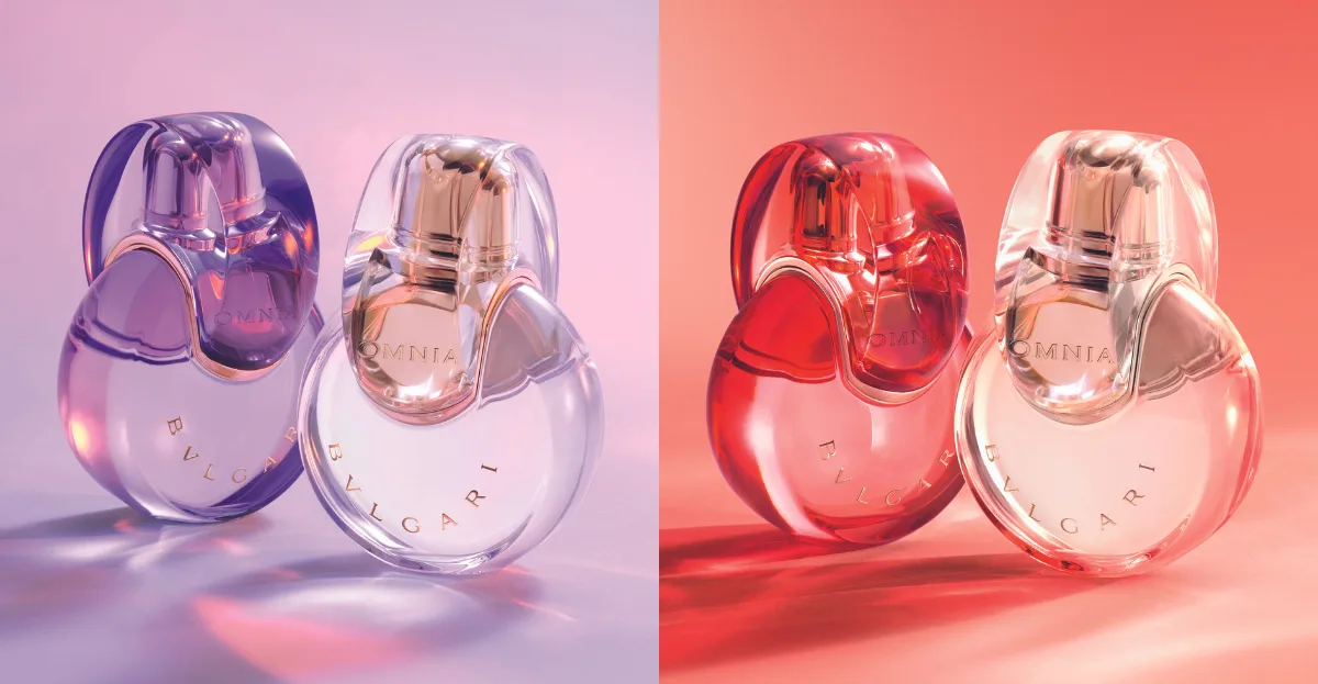 The flacon design pays homage to Omnia’s iconic shape, with two rings intertwining like an eternal dance, representing the infinity of light. The rose gold-coloured frame on the cap reflects BVLGARI’s jewelry heritage, elevating these fragrances to treasured status. Held up to the light, the bottle’s airy transparency becomes a unique treasure.