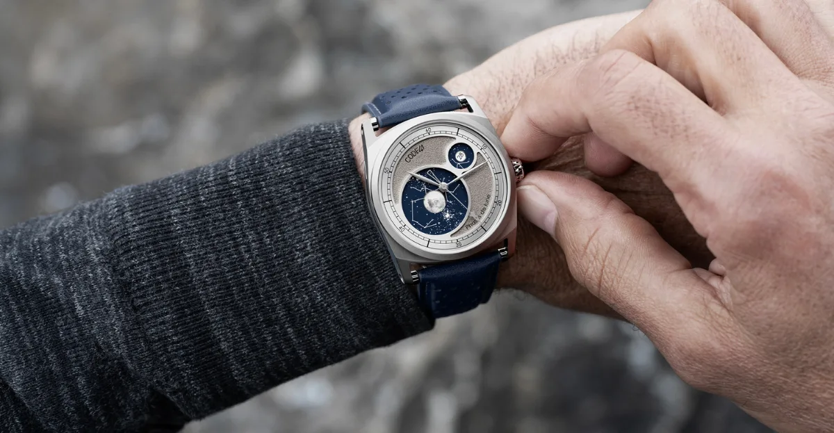 As the pioneer Swiss participatory watchmaking brand, CODE41 ventures into the realm of poetic complications with its distinctive touch. Embracing retro-classical design elements, the Moon INCEPTION moonphase watch embodies a fusion of avant-garde aesthetics and the enchanting allure of traditional watch complications. Its intricate details, from the moon and date circles forming the symbol of infinity to the textured dial reminiscent of lunar landscapes, evoke a sense of timeless elegance, accentuated by the convex sapphire crystal.