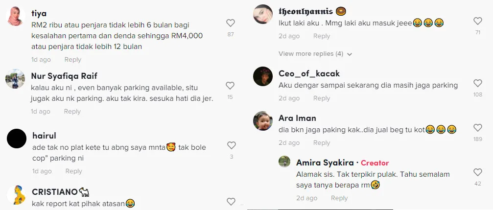 For some reason, a Malay woman decided to apply this logic to grabbing a parking spot for her friend. Needless to say, not everyone was impressed.