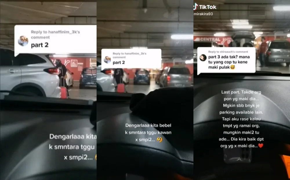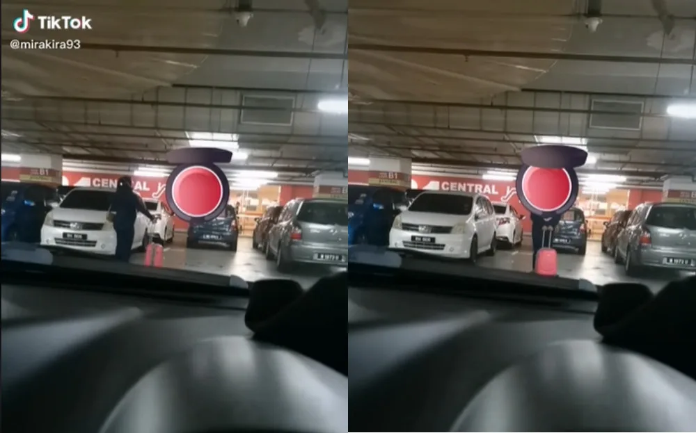 TikTok user Amira shared that she had gone shopping in Berjaya Times Square. It was there that she had a curious encounter. As she was roaming the parking lot in her car, she noted a woman standing in the middle of a lot while holding a pink suitcase. Amira soon realised the lady was ‘booking’ the lot for someone.