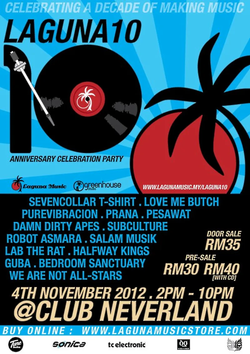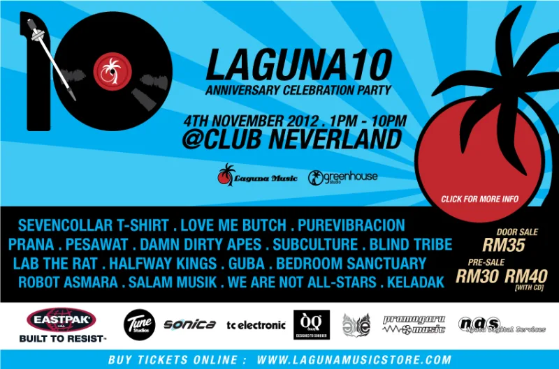 October 2012 marks the 10th year anniversary of homegrown music label, Laguna Music. In conjunction with this memorable event, Laguna Music will play host to a special 8-hour concert at Club Neverland!
