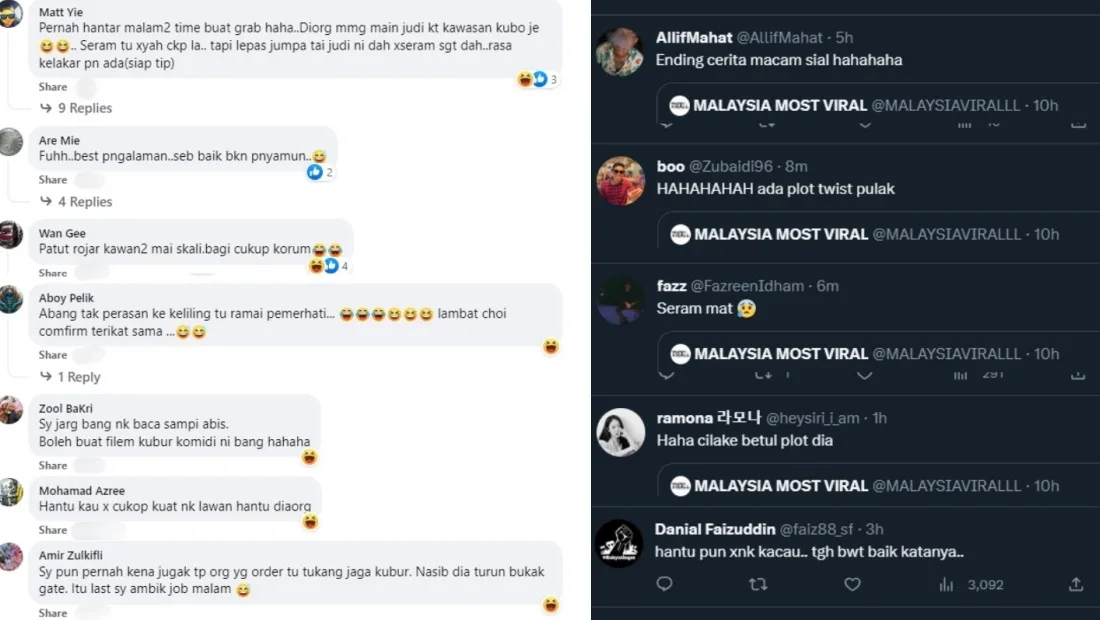 Much to the rider’s surprise (and relief?), the customers were apparently a group of gamblers who wanted to gamble in a quiet area away from the public and the police. The gamblers explained that the cemetery was peaceful and that they wouldn’t be bothering anyone. The post went viral on both Facebook and Twitter where netizens commented how amused they were by the story.