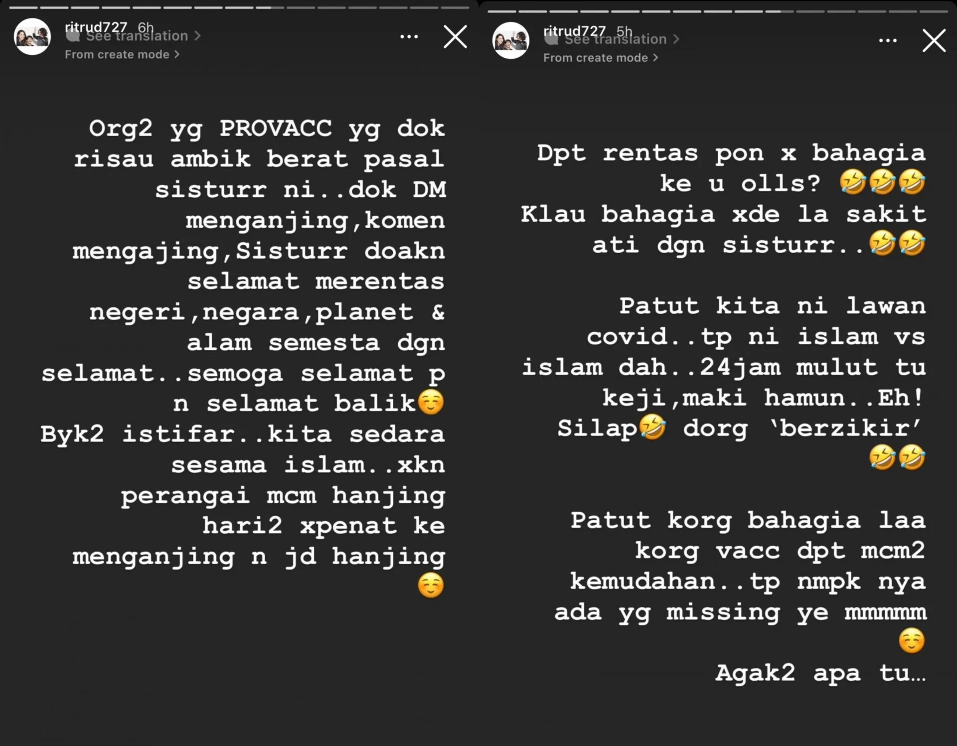 “We’re supposed to work together to combat the Covid-19 pandemic. But nowadays, even the Muslims are fighting against one another,” Rita added in her post. Not only that, she also sarcastically remarked that those who left malicious remarks towards her were actually reciting their zikir (remembering God).