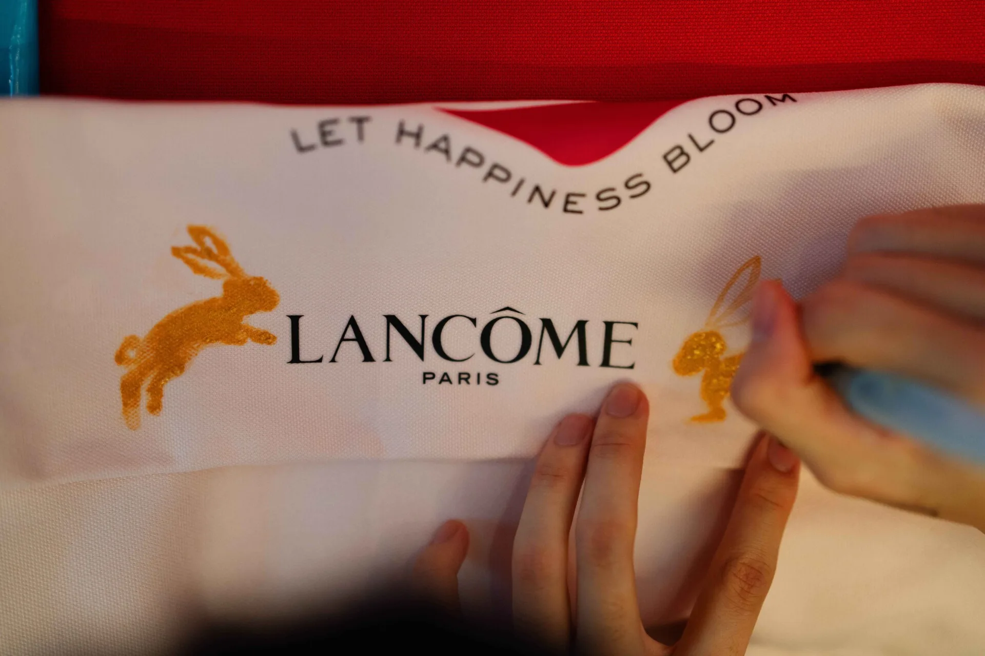 - Decorate an exclusive Lancôme tote bag with rose and rabbit stamping